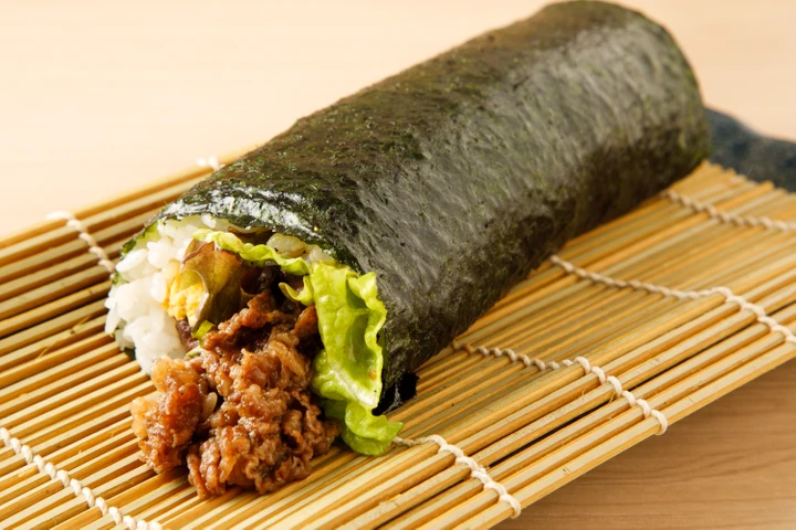 牛コマ肉を甘辛く炊き、太巻きにしました。